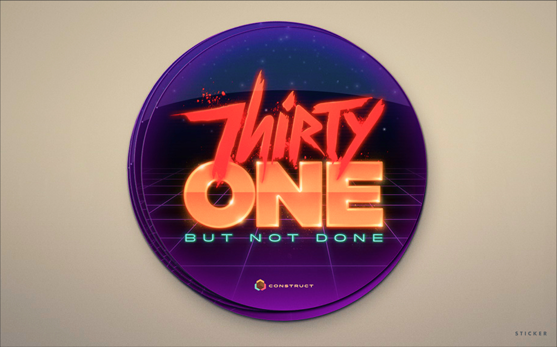 The poster features a custom typeface and treatment in “Thiry One” as well as a composite photo of what appears to be me and a bearded twin (they’re both me and I drew on the beard). The rest of the colors found and infinity grid patterns are all references to vaporwave and 80’s aesthetics—even the cheesy 80’s action movie-like tagline: “Can you survive death?” For which I was absolutely entertained by, as ridiculous as it sounded.