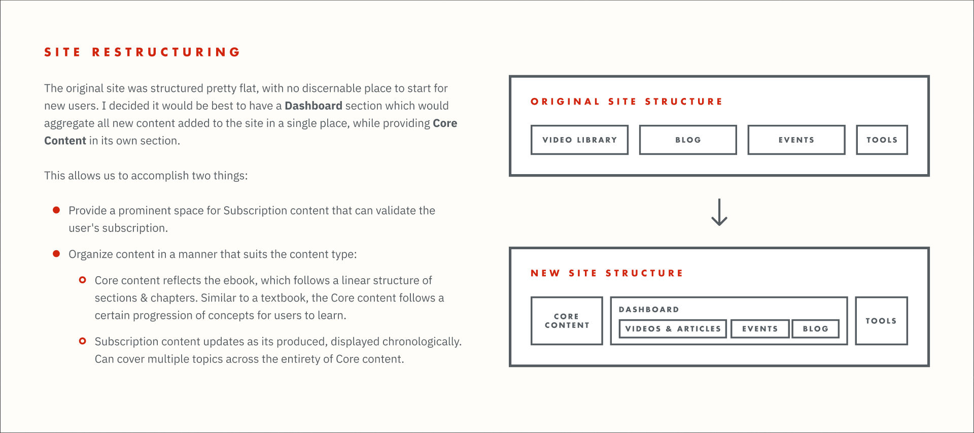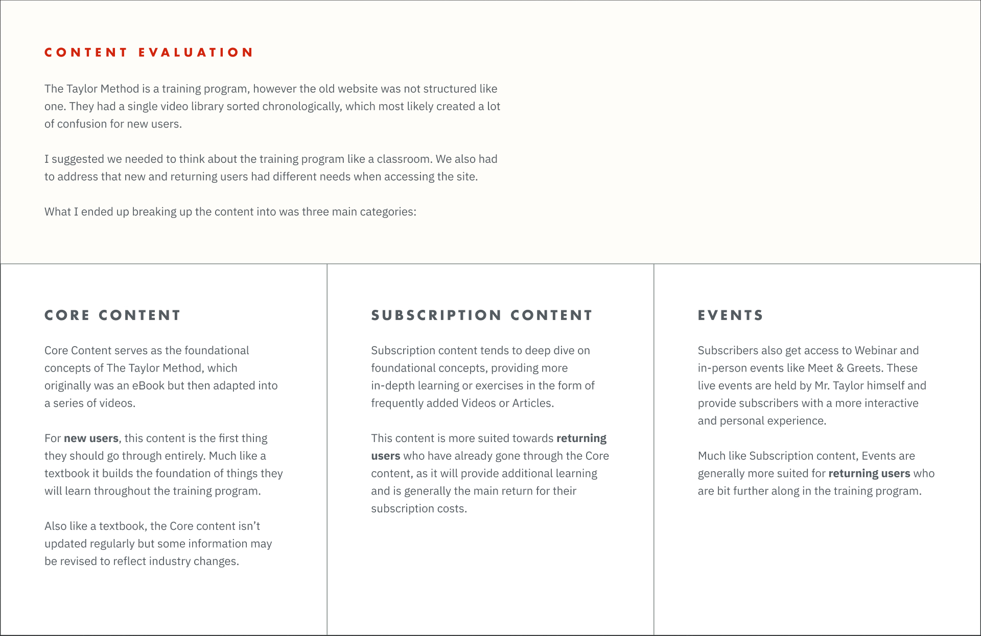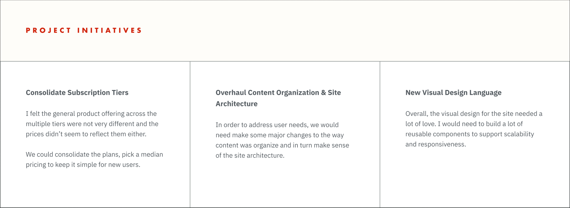 So while I was originally approached to take a look at redesigning the site, I found that we needed to take a step back further and address some major pieces of the service.